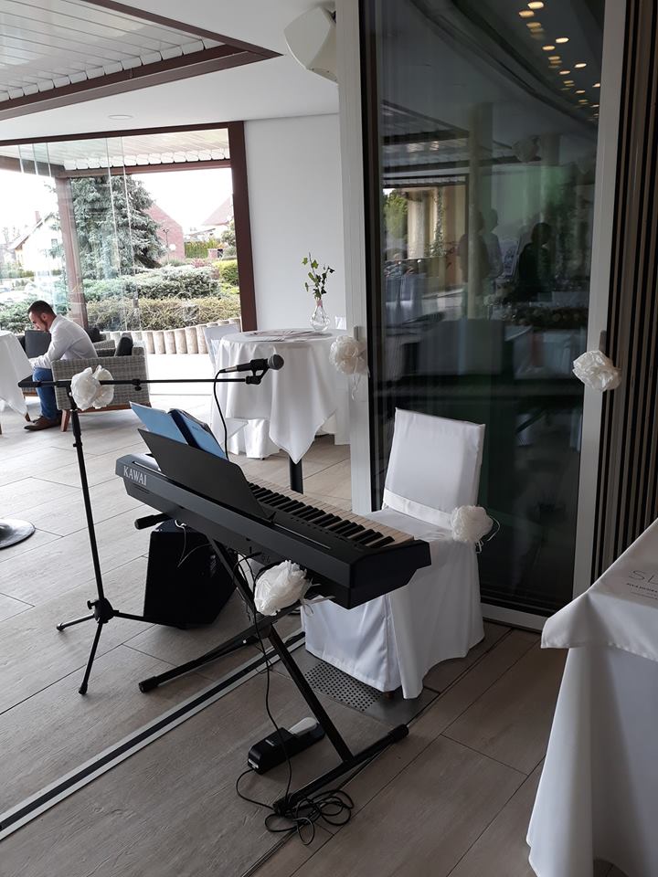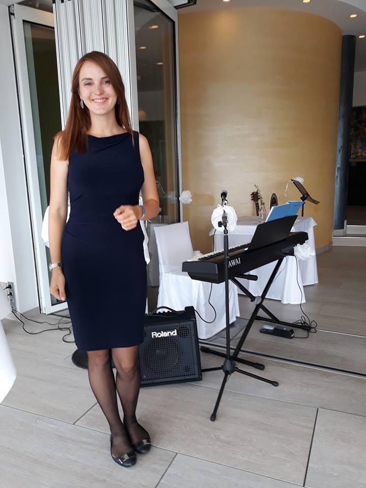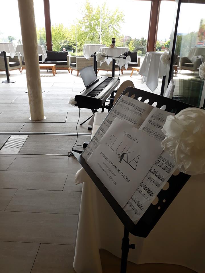 V 16 hodin se konal simulovaný svatební obřad v altánku u jezírka, kde jsem doprovázela “novomanžele” na piano a zpěvem. Oddávajícím se pro tento účel na chvíli stal vtipný a charismatický ředitel hotelu Marek. O hodinu později jsme se přesunuli na druhý simulovaný obřad na prosklené terase.